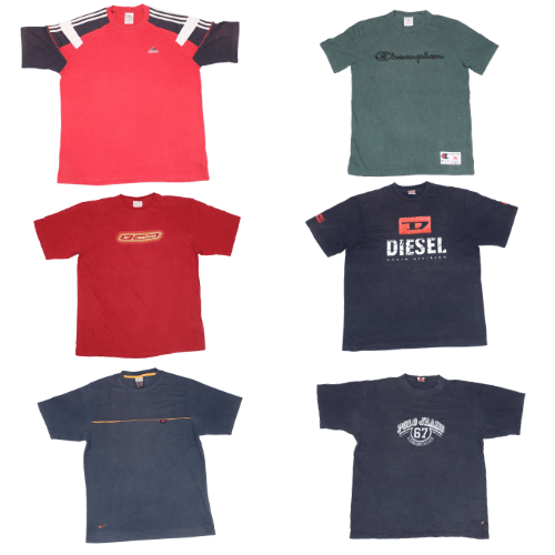 Bundle of 20 branded T-shirts in Grade AB condition. Includes Nike, Adidas, Champion, Polo & more. Mixed sizes. Only at Thrift Kings!